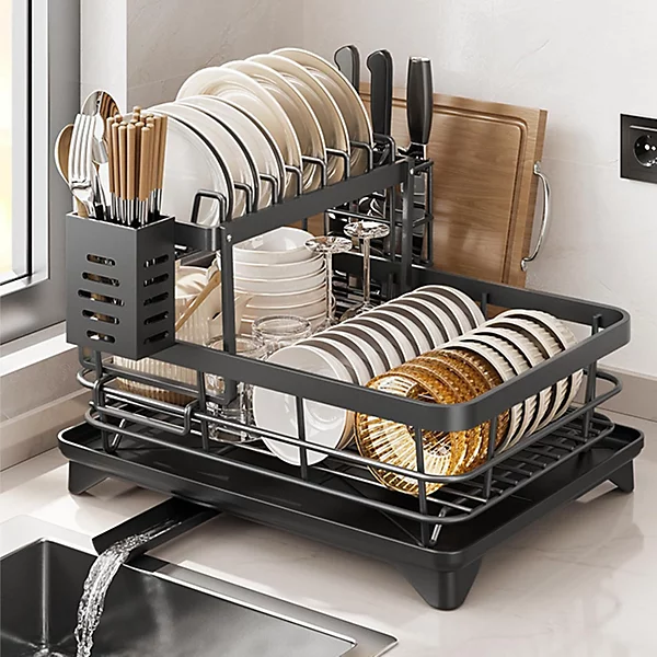 Keep your kitchen neat and well-organized with this 2 Tier Dish Drainer Rack, designed to maximize space while making dish drying easy. The two-level structure provides ample room for plates, bowls, cups, and cutlery, allowing you to store more items without crowding your countertop. Made from durable, high-quality material, this rack is built for everyday use and long-lasting performance. Its practical design helps water drain efficiently, keeping your kitchen clean and tidy. Perfect for both small and large kitchens.